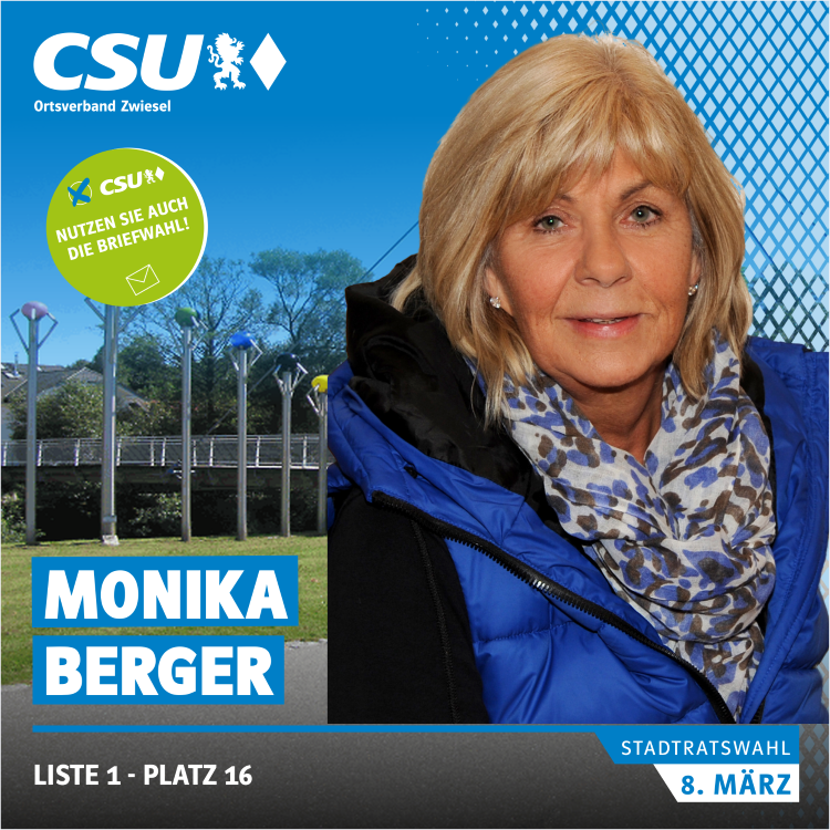 alle Kandidaten Offcanvas Platz 1 - Dr. Zettner Elisabeth Platz 2 - Haase Christoph Platz 3 - Pfeffer Elisabeth Platz 4 - Ranzinger Andreas Platz 5 - Wölfl Reinhard Platz 6 - Leher Josef Platz 7 - Haas Wilhelm Platz 8 - Schober Franz Platz 9 - Kroner Peter Platz 10 - Gaschler Meta Platz 11 Schmid Andreas Platz 12 - Scheuenpflug Susanne Platz 13 - Stangl Karl Platz 14 - Gruber Christian Platz 15 - Keilhofer Martin Platz 16 - Berger Monika Platz 17 - Puschmann Tobias Platz 18 - Schröder Florian Platz 19 - Weinfurtner Erwin Platz 20 - Hiller Hans Edit Template Stadtratswahl Zwiesel - Unsere Kandidaten Platz 16 - Berger Monika Download nur mit Genehmigung Berger MonikaHeilpraktikerin i.R. und Mitarbeiterin Demenz-WGZwiesel Weitere Artikel ansehen Vorheriger BeitragPlatz 15 – Keilhofer Martin Nächster BeitragPlatz 17 – Puschmann Tobias
