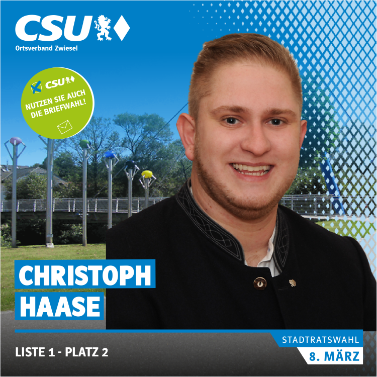 Haase Christoph, Berufsschullehrer (Metalltechnik / Physik), Zwiesel , 27 Jahre, Stadtrat         ,